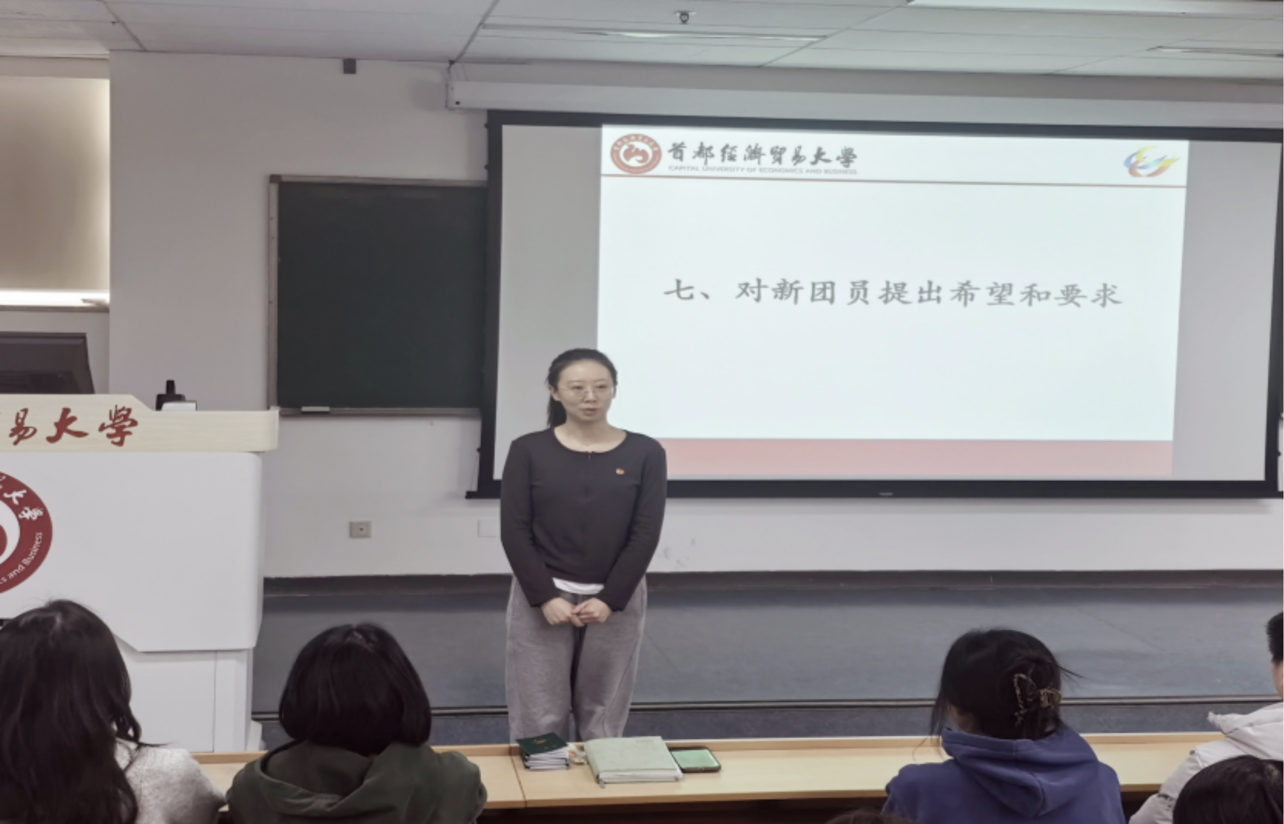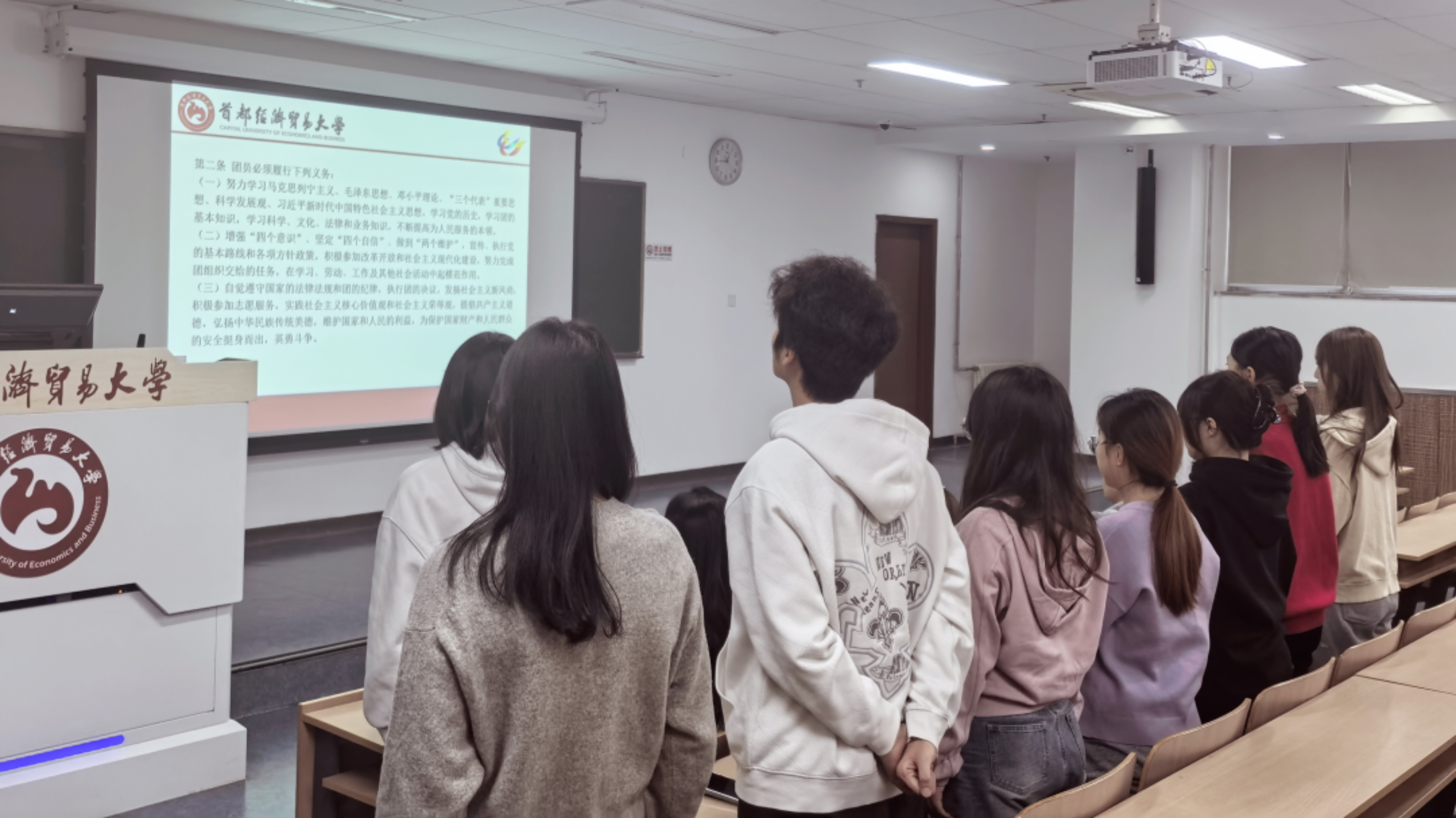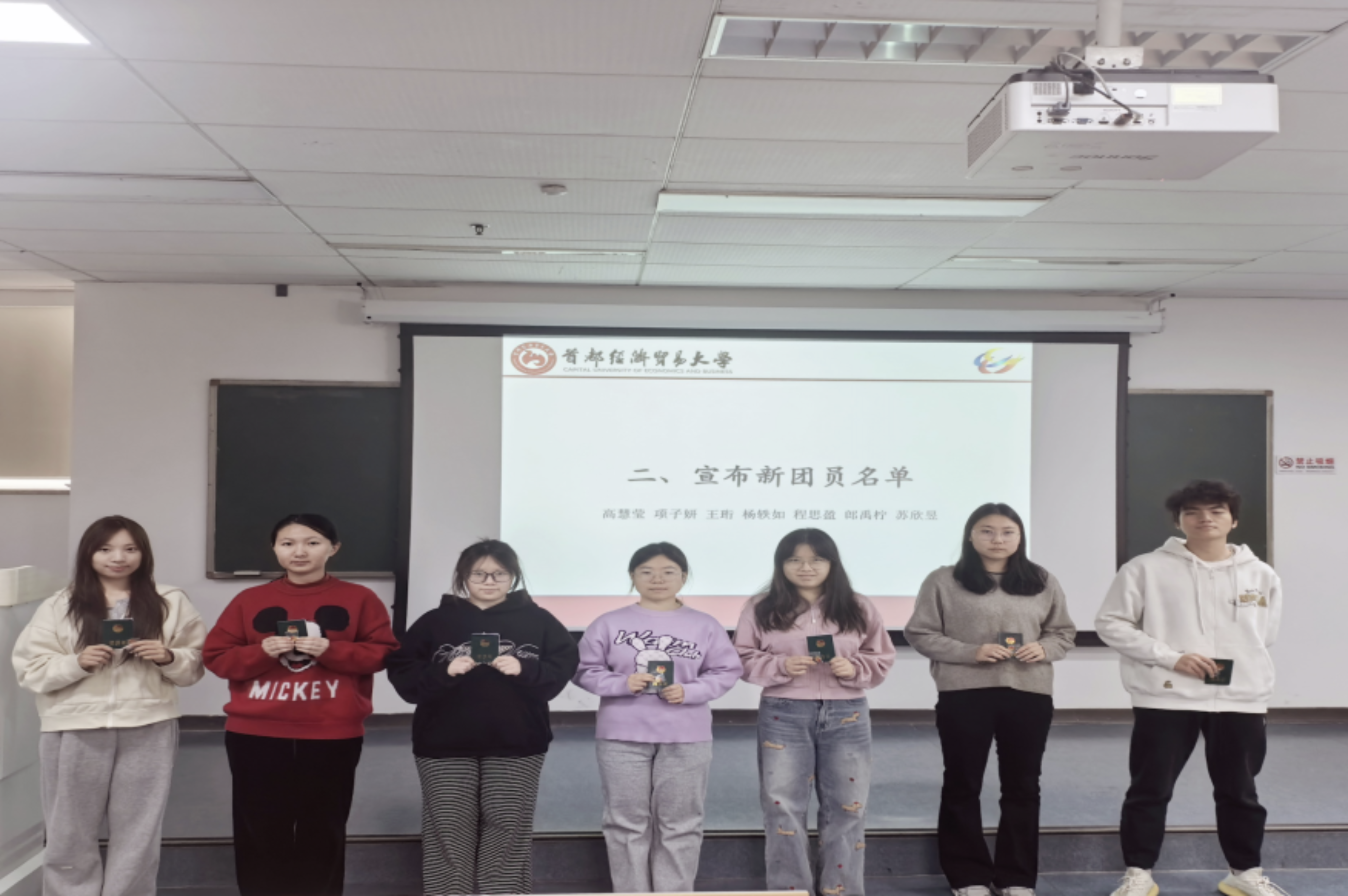 2025年12月8日,乱交 团委举行2025年新发展团员入团宣誓仪式。参加本次会议的有团委书记郭奕彤,学生副书记闻雨轩、李丹、隗祎霖、马宇轩以及七位新发展团员。