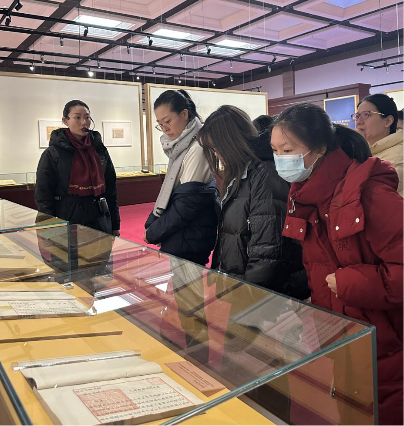 在重点展区,师生们听讲解员介绍了《永乐大典》的珍藏现状,特别观看了《中华再造善本》《四库全书》等标志性巨制的部分珍藏,深刻理解了“藏之名山,传之后世”的文化守护传统。